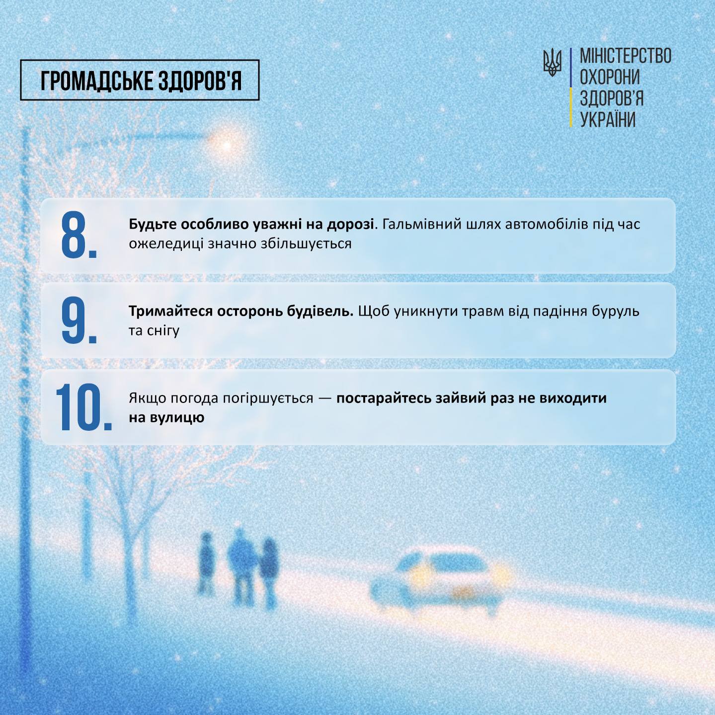 У Центр громадського здоров’я України кажуть: перш за все необхідно оцінити свій стан. У разі удару голови або підозри на перелом — одразу телефонуйте 103 або 112.